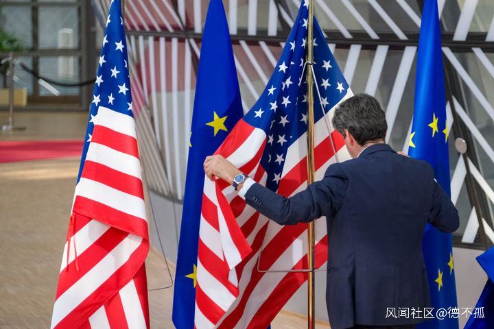 2022年3月24日,工作人員在比利時布魯塞爾的歐盟總部整理美國國旗。北約、七國集團和歐盟三場峯會24日在比利時布魯塞爾召開。新華社記者 張鋮 攝