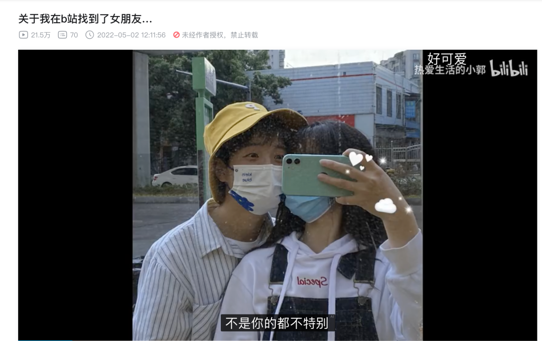 上述兩大社區的情感內容,目前主要以圖文形式存在。相形之下,B站提供的視頻化內容更為直接,是年輕用户當下主流的情感表達方式,提供的更是一種集體參與的體驗式戀愛。