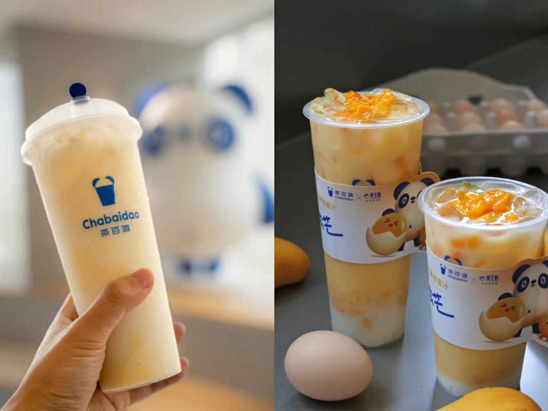 5月18日,茶百道官宣與黃天鵝聯名,使用可生食雞蛋,全國上架“芒果蛋蜜汁”和“冰激凌蛋糕奶茶”兩款新品。