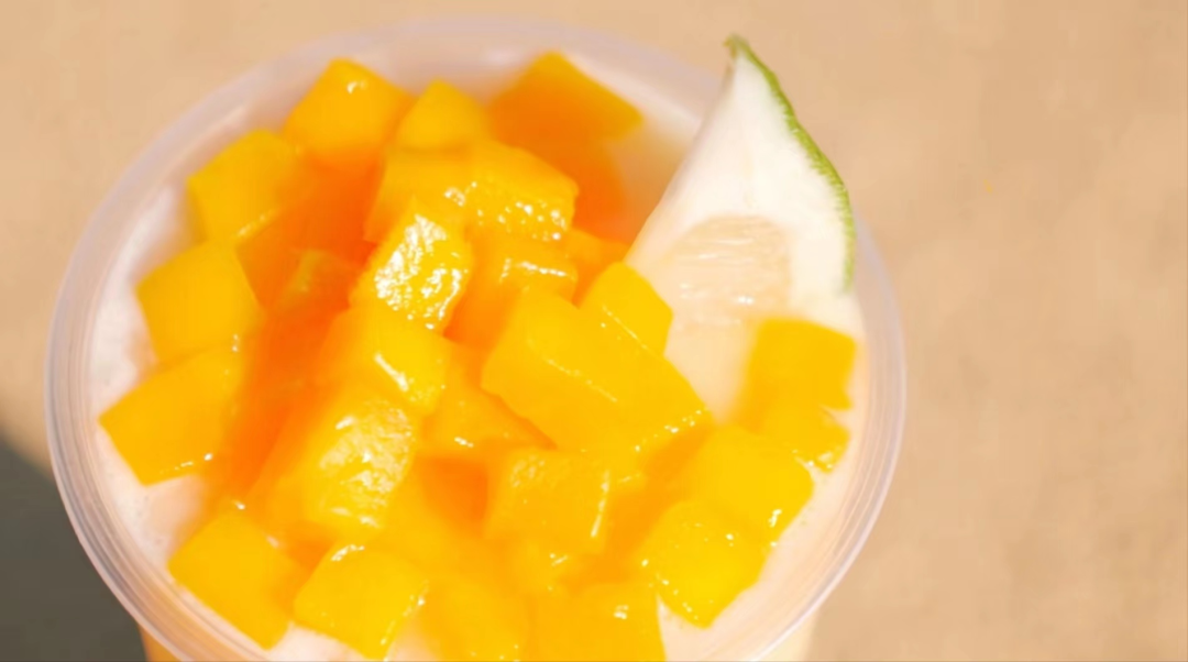 其中,“芒果蛋蜜汁”是用無菌蛋黃液、芒果肉、麻薯一起攪打製作而成。