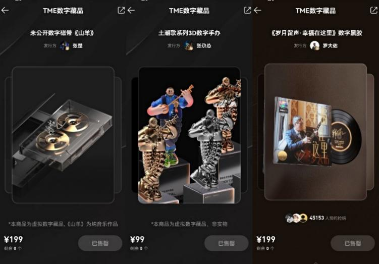 數字藏品方面,TME推出了胡彥斌二十週年黑膠《和尚》,有聲《十三邀》黑膠唱片、張楚未公開的數字磁帶《山羊》、張尕慫的3D手辦系列盲盒「土潮歌」等產品,探索全新的音樂藝術的表達形式以及內容價值收益。