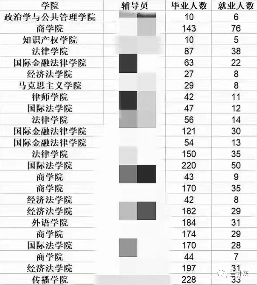 (網傳上海某大學畢業生就業統計)