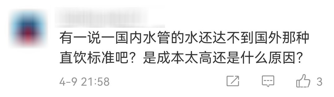 之前看到一個帖子,問大家平時喝不喝自來水,原因是有些地方因為封控沒法買桶裝水,於是就囤了很多礦泉水。