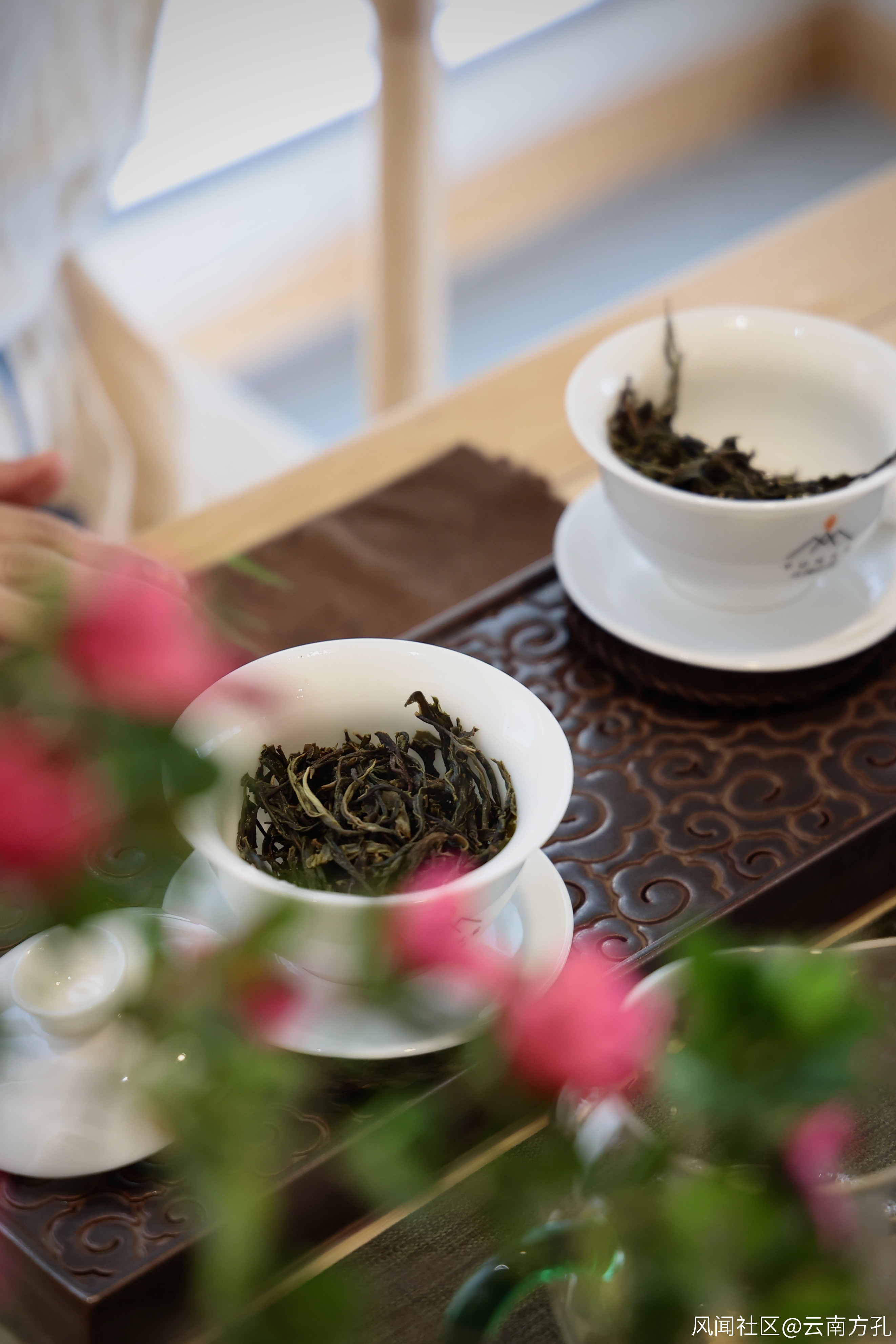 雲柯莊園位於東南隅。不要以為它周圍森林錯落,茶樹葳蕤,四時鮮花,它不過是這座二線城市樓宇峯巒之間的一座茶樓,是雲柯莊園的公司總部。門前與柯峯握手言歡,並隨他上樓落座喝茶。下午茶時分,順邀入席,席中已圍坐一干人,有茶藝師、有愛茶人、有記者、編輯。是時,主持人款款入場,着旗袍,執麥克,細言道:“茶裏乾坤大,壺中歲月長。一葉茶,一個青綠的世界……雲柯莊園2022春茶十大名茶品鑑會現在開始“。