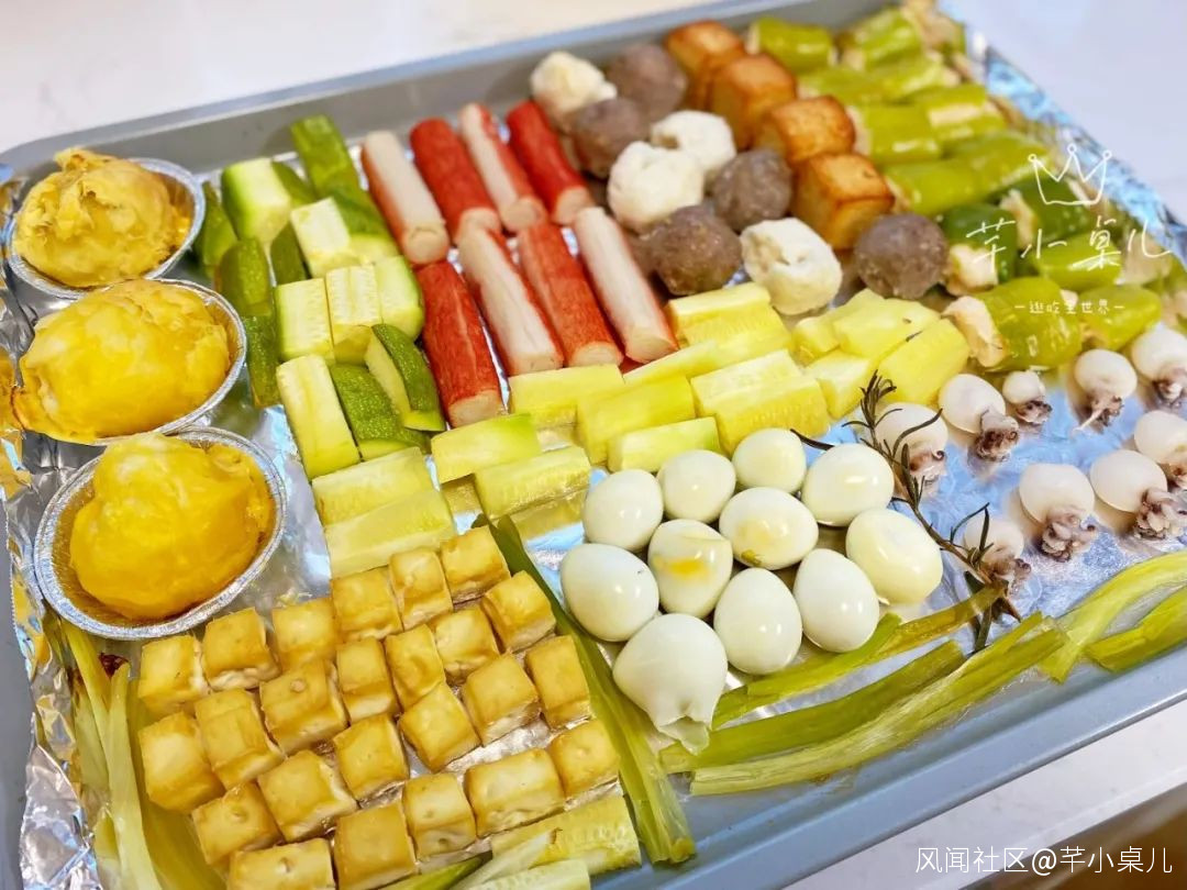 首先吧你以往下火鍋的東西都拿出來,除了綠葉菜和乾貨之外,基本沒啥限制,都能烤。
