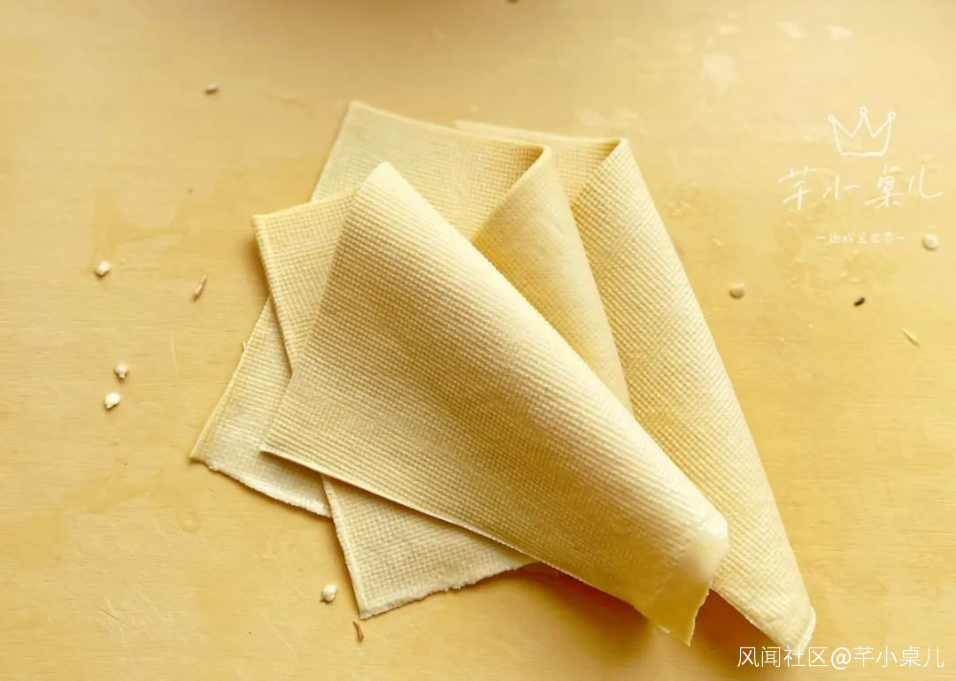 豆腐皮洗乾淨切成2指寬,對豆腥味敏感的可以提前焯一下水再切,上面豆腐也是一樣。