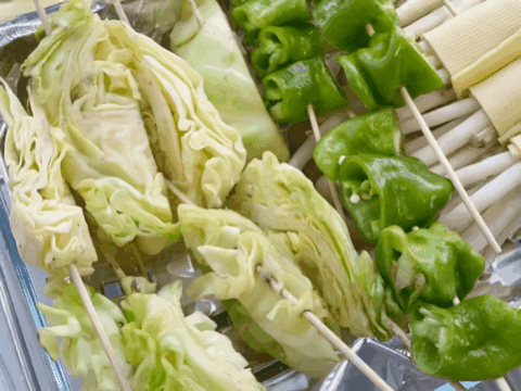 包菜串、蘑菇串竟烤出來甜絲絲的味兒;