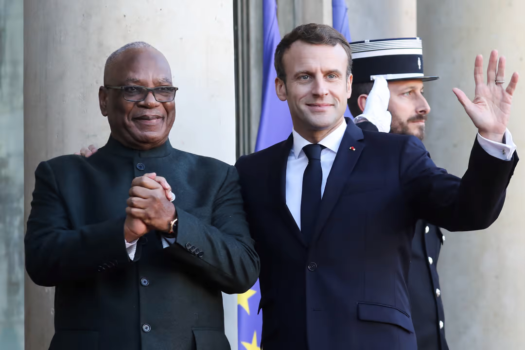 ●2019年11月,法國總統馬克龍與馬裏總統凱塔在巴黎,後者不到一年後即遭軍方政變推翻 / 網絡