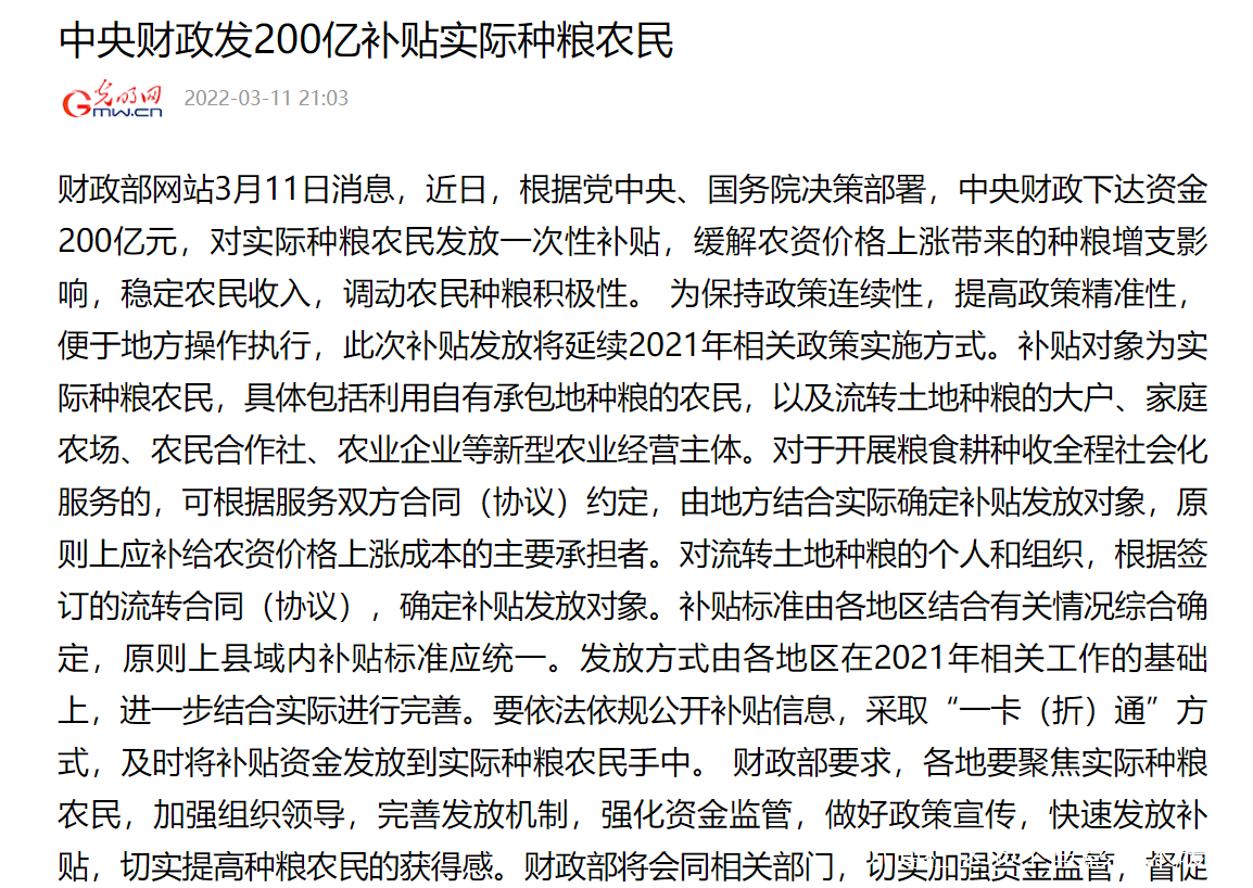 中央財政資金300億補貼種糧農民居然有人陰陽怪氣?真相是什麼?_風聞