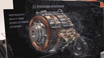 比亞迪海豹雙電機版本,前置160kW的交流異步電機,後置230kW的扁線電機。為什麼用扁線?扁線電機效率高、損耗低、散熱性能優、功率密度大、噪音低、更輕便,且有效材料成本比圓線低8~12%,疊加整車性能提升與電耗優勢,可降低整車成本的15%。日常工況,異步電機斷開,僅扁線電機工作,加速工況,雙電機共同發力。兩種電機互補,兼顧電機高效率與空載低損耗,實現四驅動力+兩驅能耗。