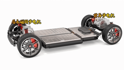 大家都知道啊,目前市場上的新能源車,主要用的是永磁同步電機和異步電機這兩種,在一些雙電機的新能源車中,異步電機的作用主要是用於搭配永磁同步電機,以實現在低速和高速工況的表現平衡。比如説比亞迪e3.0平台,前驅用異步電機,後驅用永磁同步電機。當汽車處於中低速工況時,低速高效率的永磁同步電機工作,維持電機的高效運轉,續航也就相對更好一些,當汽車處於高速工況時,永磁同步電機和異步電機同時工作,這時候電動車的加速性能也就更好一些。