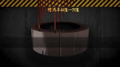此外圓線電機的槽滿率偏低,也就是線圈放入槽內後佔用槽內空間的比例偏低,僅有40%左右。槽滿率偏低也就意味着電機的功率密度偏低、重量偏大、電動車的動力也就偏弱。