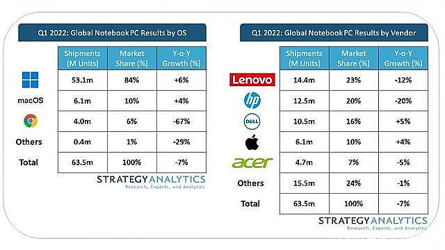 根據Strategy Analytics數據顯示,目前在全球筆記本電腦市場中,排名靠前的分別是聯想、惠普、戴爾、蘋果、宏碁,各自佔據了23%、20%、16%、10%、7%的市場份額,以華為目前的出貨量,只能歸到Others這一欄中。