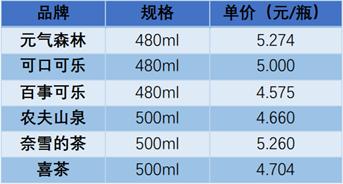 《港灣商業觀察》對比同一時間,幾大飲料官方旗艦店的氣泡水產品,以整箱價格換算單價來看,元氣森林氣泡水均價一瓶5.274元,同樣480ml的可口可樂小宇宙AH!-HA!氣泡水價格為5.000元,百事可樂bubly氣泡水為4.575元。線上渠道官方定價的六款產品中價格最高的是元氣森林。