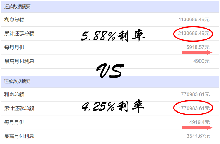 同樣的算術題,前兩天我還和同事喬不絲計算,同樣的100w貸款,政策前後差別,我算的是隻有幾萬,而她算的前後差別是幾十萬