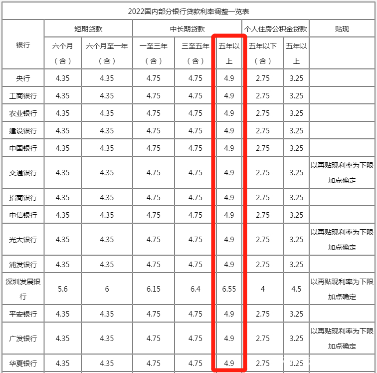 這是四大行和其他銀行五年以上中長期貸款利率,基本都在4.9%,像深圳發展銀行在6.55%,還有恒生銀行也是6.55%