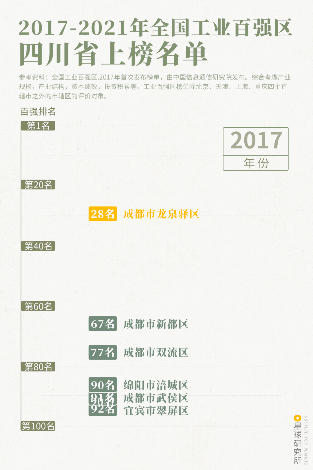 2017-2021年“中國工業百強區”榜單中四川省上榜名單****|****製圖@楊寧/星球研究所
