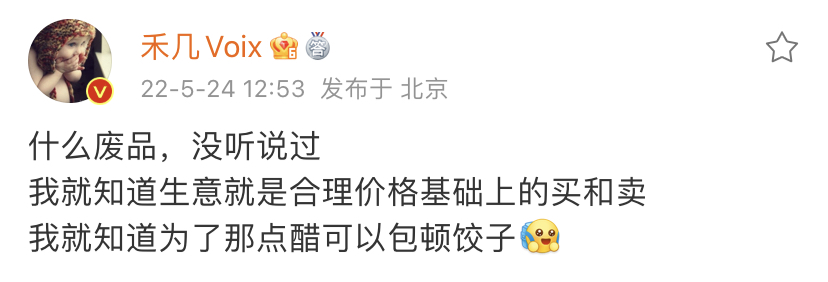 對於某物被當做廢品,@禾幾Voxi 説,沒聽説過,只知道生意就是合理價格基礎上的買和賣。