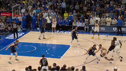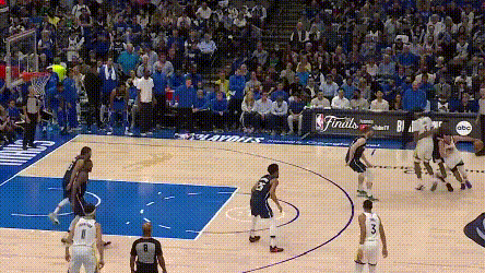 然而,那個男人也回來了,他從板凳席起身出場,然後在三分線外兩步的位置叫掩護打克勒貝爾強行要分——從極高的位置擋拆,可以保證過人,而只要擺脱上線防守,獨行俠根本沒有護筐。下一個回合,維金斯貢獻了金州勇士的賽季最佳扣籃,把比賽勢頭又完全穩在了金州一邊——這個機會怎麼來的?