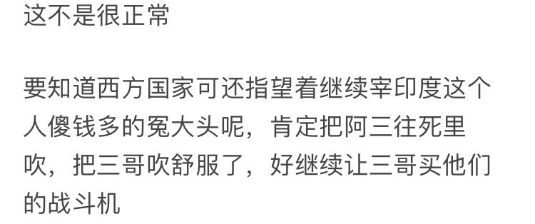 “這不是很正常,要知道西方國家可還指望着繼續宰印度這個人傻錢多的冤大頭呢。”