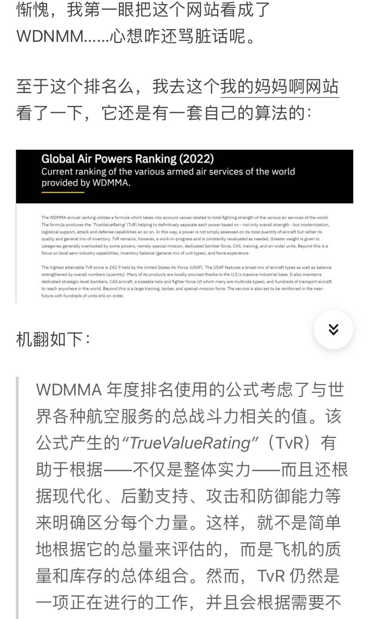 近日,世界現代軍用飛行器詞典(WDMMA)網站發佈了一份2022年全球空中力量排名,其中印度空軍被排在全球第6,位居中國空軍前一位。