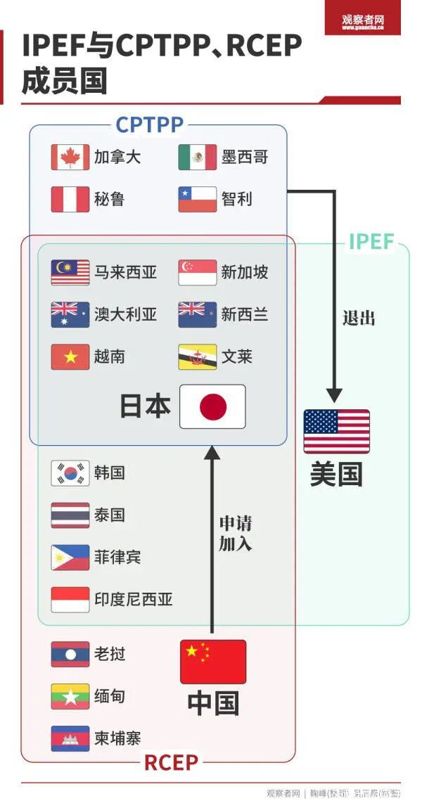 RCEP15個成員中的11個,CPTPP11個成員中的7個,此次簽約加入IPEF,再加上人口No1的印度和經濟No1的美國的加入,一個龐大的針對中國的包圍網,就這麼不知不覺的建立了起來。