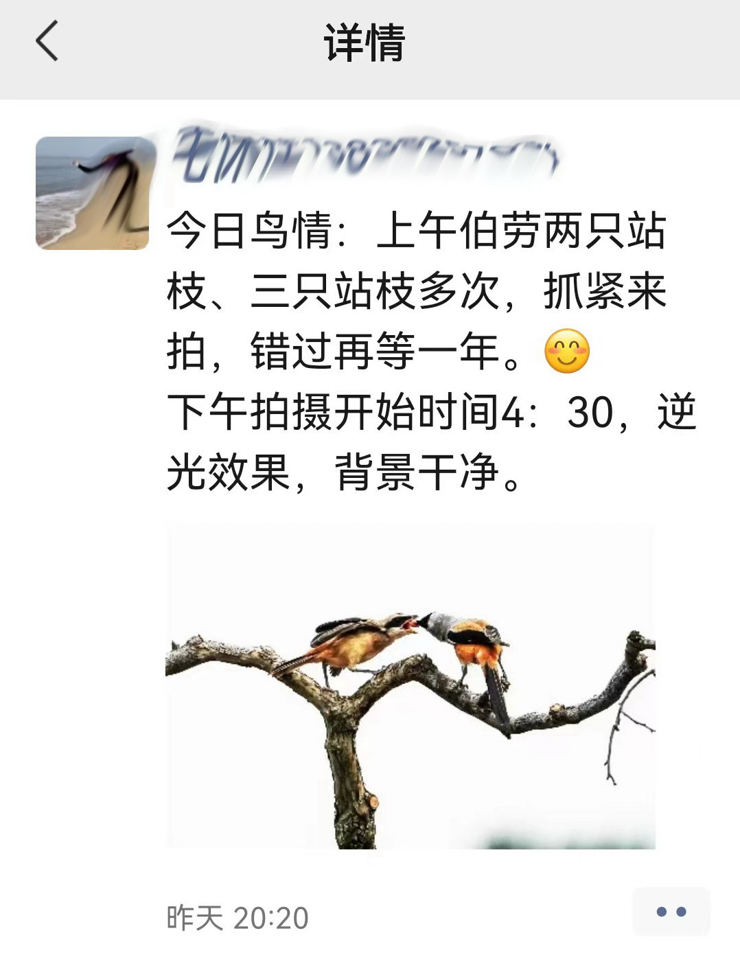 筆者在鳥類攝影愛好者發給的微信截屏裏,發現賈魯河歡河段,不僅設有誘拍紅隼拍攝點,還設有棕背伯勞等鳥誘拍點。