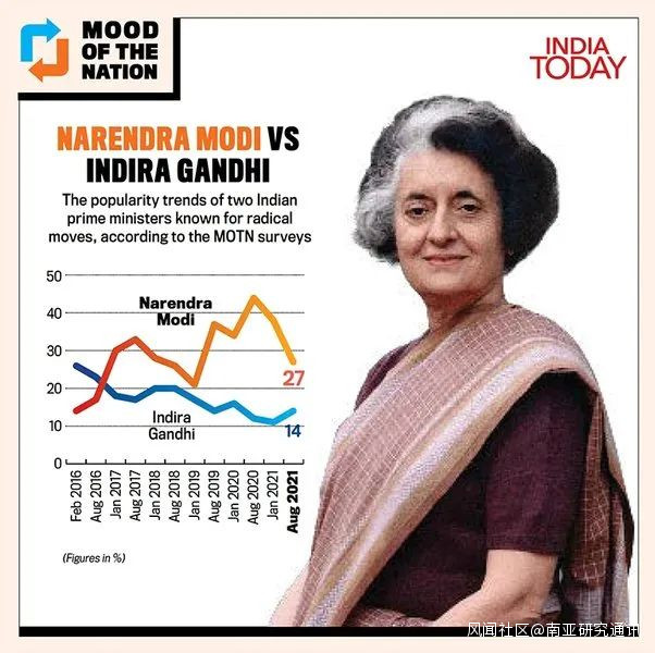 所以在印度搞政治就跟賭博似的——**這把賭輸了頓時聲望大跌,下一把賭贏了又立馬就能鹹魚翻身。**現任印度總理莫迪更是堪稱政治冒險的大行家,莫迪任期內的支持率變化,那簡直就跟坐過山車似的,疫情期間曾經在一年內從66%跌倒24%,如今又回到了高位。