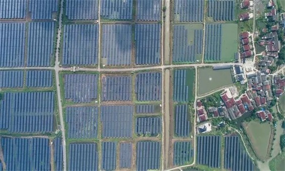 從谷歌地圖上你可以看到,太陽能供電的魚塘(簡稱“光伏魚塘”)已經開始替代桑基魚塘。湖州的部分地區已經裝上了太陽能電池板。