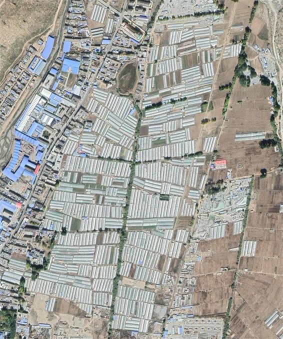 下面還是大棚,但是是西藏的大棚。把谷歌地球移到西藏任何城鎮,都能看到大棚。