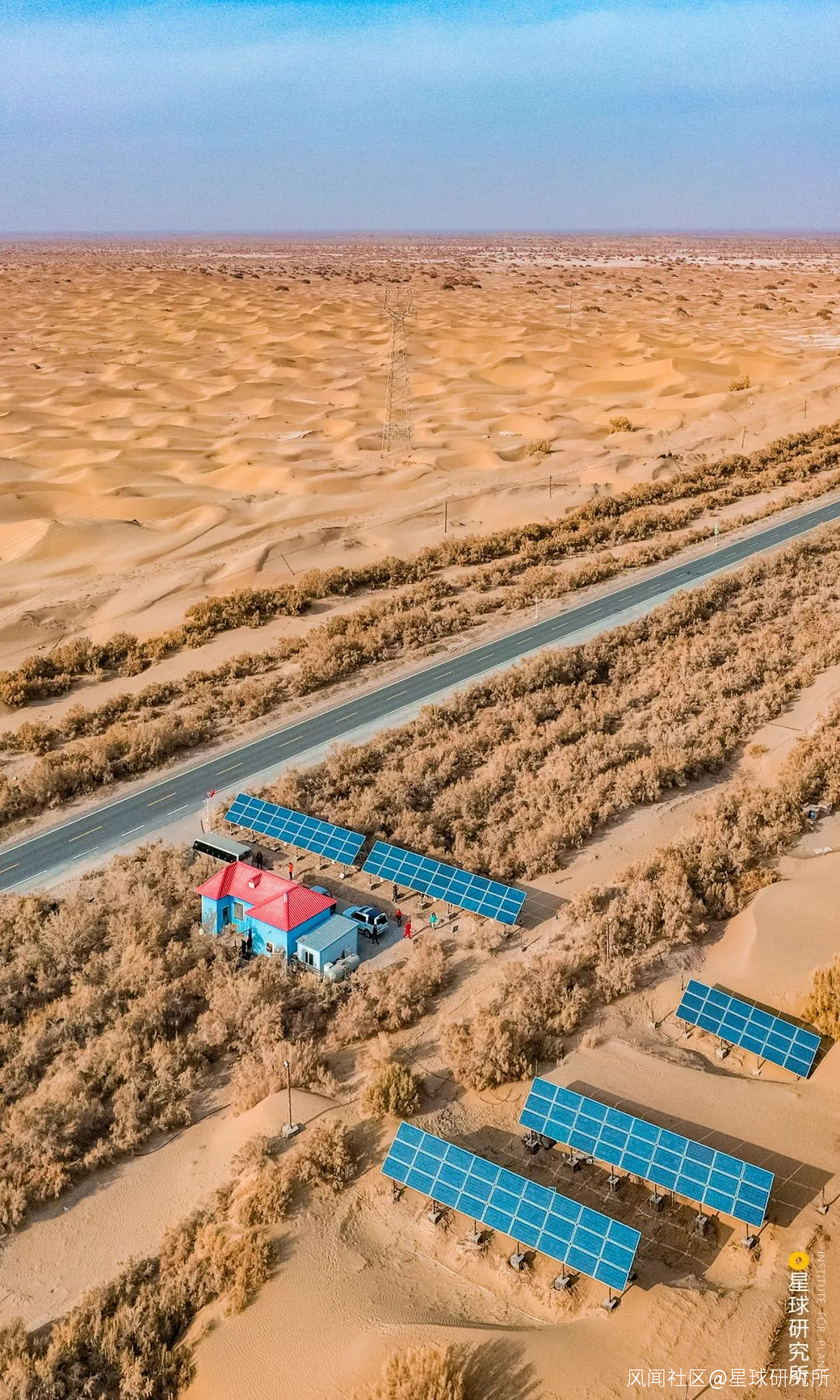(沙漠公路上的水井房,被當地建設者親切稱為藍房子,沿着公路路段每隔3至4公里,就會設置1座水井房,這既是養護工人進行抽灌作業的地方,也是他們長期生活的場所,攝影師@鮑俊璇)