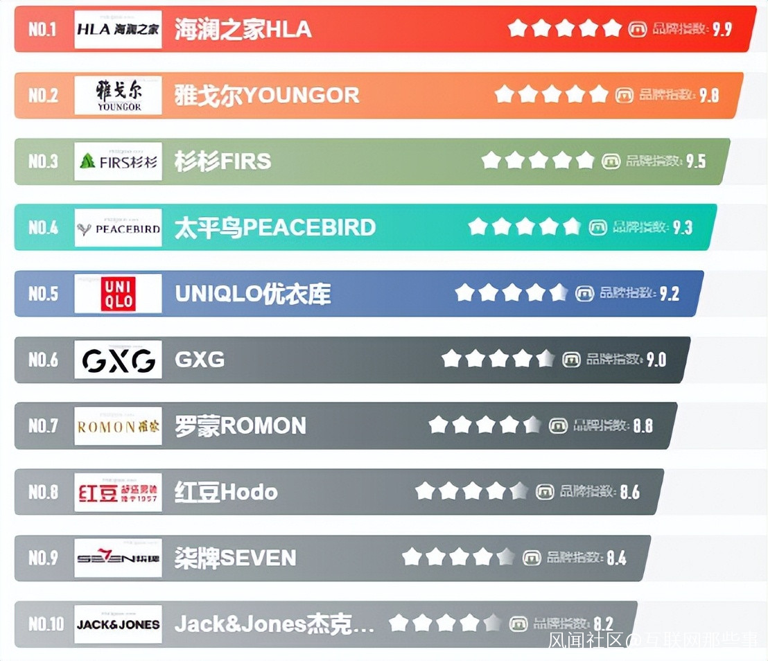 2022年男裝十大品牌榜中榜/Maigoo製圖