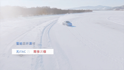 比如説兩輛車做雪地角階躍測試,沒有iTAC的車出現轉向過度和轉向不足。而有iTAC的車,車身呈現平穩線性行駛。再比如説雪地圓環漂移,沒有iTAC的車方向需要多次修正,有iTAC的車不僅方向無需頻繁修正,而且車速提高5-10公里每小時。