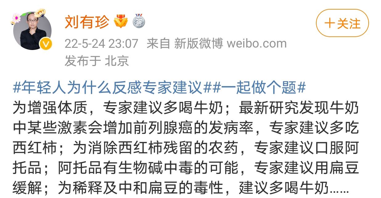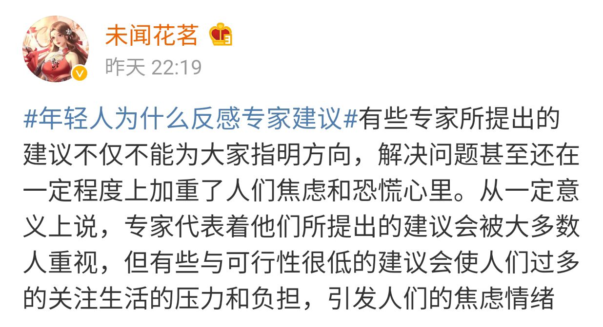 除去大部分的人吐槽這個建議實在是沒什麼實際意義以外,很多人也開始討論為什麼現在有很多人都不喜歡專家的建議。