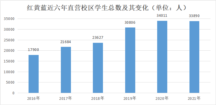 可以説,被剝離的直營幼兒園是紅黃藍最有價值的資產之一。公開資料顯示,雖然爆發虐童風波,但2016年-2020年紅黃藍直營校區學生總數始終保持上升態勢。截至2021年12月31日,紅黃藍直營校區共有學生33890人,被剝離實體的總資產為1.638億美元,約佔公司總資產的57.9%。