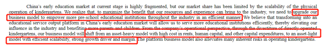 財報中,紅黃藍對轉型表達了積極的態度:“中國現階段早教市場高度分散,但我們的市場份額一直受限於幼兒園實體的擴張。為最大化利用公司的資源和經驗,我們需要升級商業模式,以高效的方式賦能全行業機構。剝離直營幼兒園後,我們的經營模式從租金成本高的重資產模式,轉變為高效可擴展的輕資產模式。平台化的商業模式也緩解了幼兒園運營的諸多內在風險。”