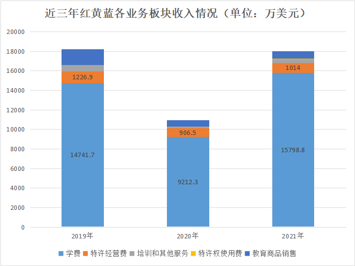 2021年年報指明瞭更清晰的方向,紅黃藍聯合創始人、董事及CEO史燕來表示,2021年全年各業務線從疫情中恢復顯著,未來公司將轉型成為教育服務平台企業。具體而言,剝離國內直營業務後,紅黃藍旗下子公司簽訂了一系列為期15年的服務協議,公司將繼續為被剝離的幼兒園提供品牌特許權使用費、培訓、管理IT系統、招聘和課程設計服務,以服務費的形式從原VIE中獲得很大一部分收入。由於不再產生直接成本,剝離後的利潤率甚至高於直營模式。