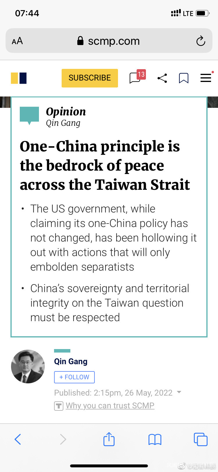 秦剛大使在外媒發文:台海和平、中美關係的基石,正面臨前所未有的威脅!_風聞