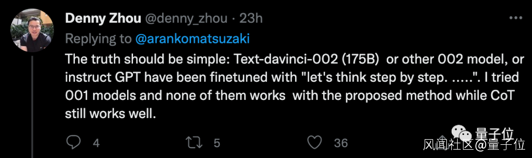 不過有人實驗得出,這種辦法似乎只對GPT-3(text-davinci-002)比較有效,他嘗試了001版本,發現收效甚微。