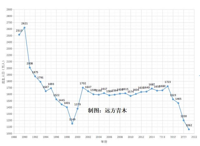 2001年,中國出生1702萬人,隨後十幾年出生人口一直在1500~1700萬之間震盪。