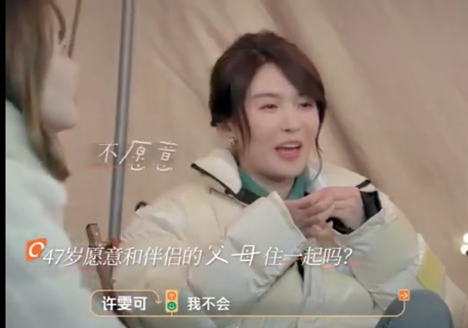 在最新一期的綜藝節目《燦爛的前行》,在場嘉賓被問到如果要和伴侶的父母住在一起,你是否可以接受。