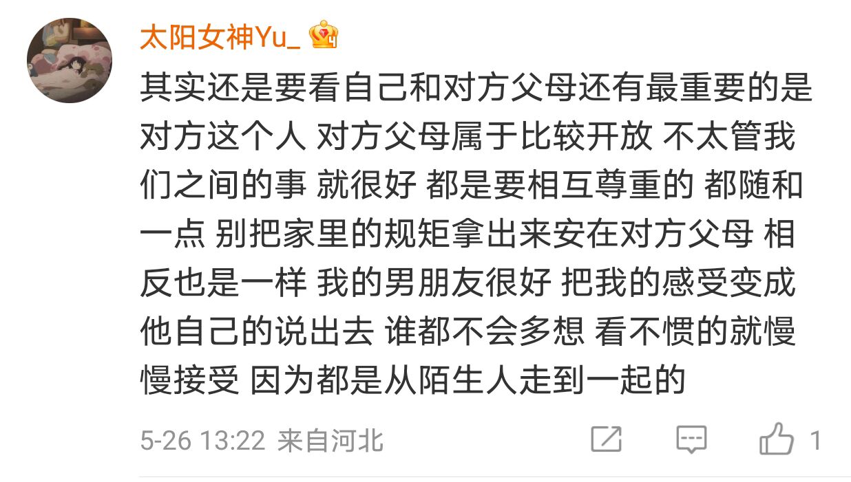 不過也有人表示可以接受和自己的公公婆婆住在一起,因為認為如果公公婆婆從一開始就不喜歡的話,也不會讓兩個人結婚了。