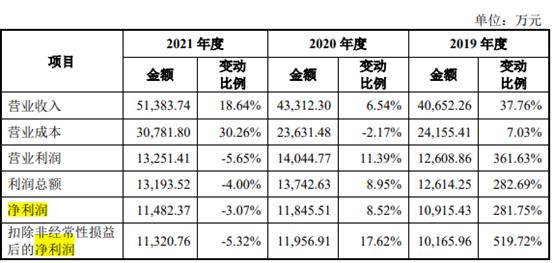 招股書顯示,新天地藥業2019年、2020年、2021年營收分別為4.07億元、4.33億元、5.14億元;歸母淨利潤分別為1.09億元、1.18億元、1.15億元。