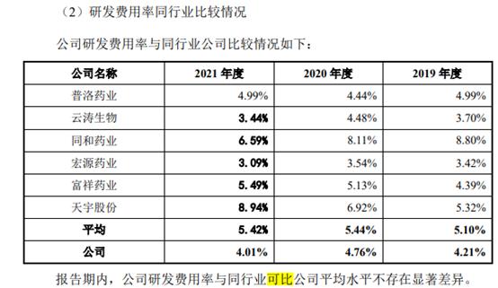 即便與同行相比,新天地藥業的研發投入也處於中下,低於平均水平。