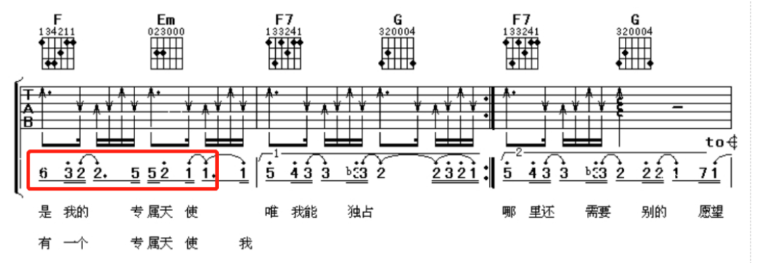 從第二張專輯開始,Tank的旋律創作上,套路化的痕跡就比首專要重了一些,像《專屬天使》的一些樂句: