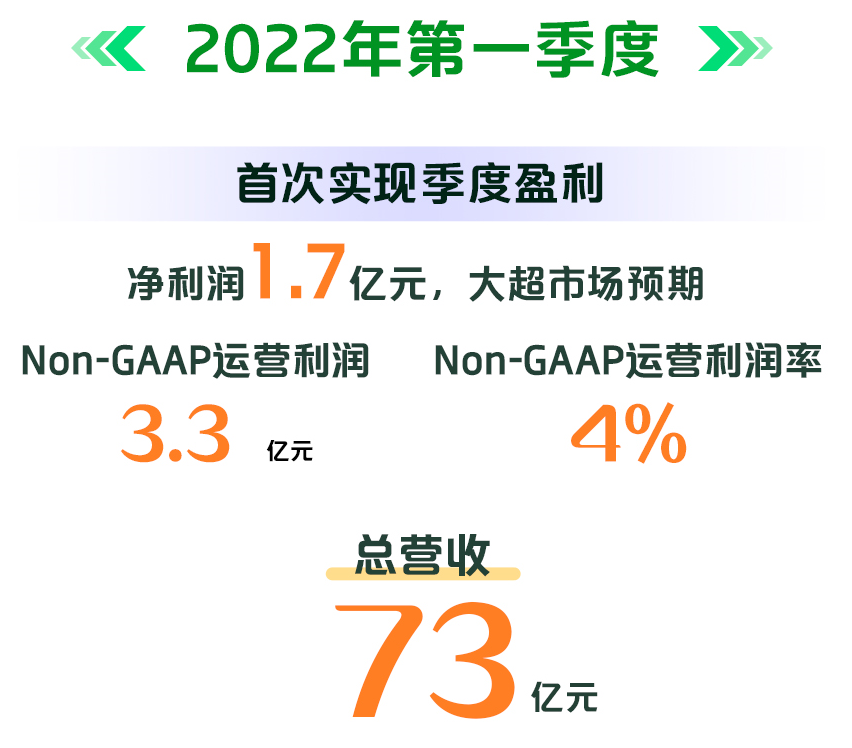 就成績來説,2022年Q1,愛奇藝實現營收73億元。重點在於,報告期內歸屬於愛奇藝的淨利潤為1.7億人民幣,大幅超出市場預期,市場預期為淨虧損6.7億人民幣。同時,愛奇藝季度non-GAAP淨利潤為1.6億人民幣,non-GAAP運營利潤3.3億元,利潤率4%,毛利率連續三個季度走高,並創歷史新高。