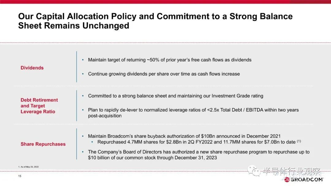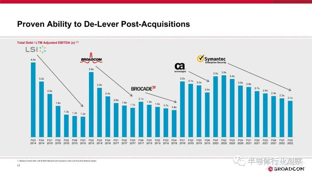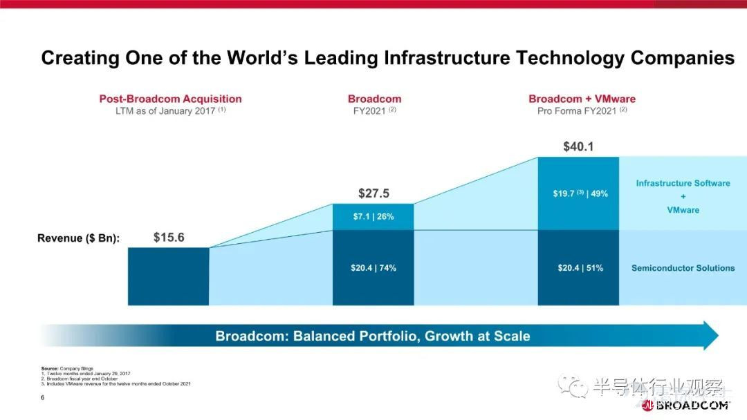 雖然容器在超大規模和雲構建者以及所有模仿它們的酷孩子中風靡一時,但在企業中,VMware ESXi 虛擬機仍然是軟件消費的單位,公司已經花了一大筆錢——並將繼續花一大筆錢——維護由 ESXi、vSAN 虛擬 SAN 存儲和 NSX 虛擬網絡組成的“21世紀軟件大型機” ——前 VMware 首席執行官 Paul Maritz 解釋説這是 2009 年 3 月世界經濟衰退時的目標也搖搖欲墜,併為增強 VMware 的成功創造了條件。VMware 現在有點不同了。它的軟件已經擴展到涵蓋企業數據中心的所有方面,它的客户羣很大,而且客户羣像以往一樣規避風險。因此可以肯定的是,大多數 VMware 客户將留在原地,並且他們將在 VMware 堆棧之上管理的虛擬機和工作負載的數量在未來幾年將像過去十年一樣保持越來越温和。並且能夠在公共雲上部署 VMware 的軟件基礎架構,這給它一個混合故事,可以與 IBM在 2018 年 10 月以 340 億美元收購 Red Hat後推動的故事相媲美。如果博通在收購博通之後仍將總部設在新加坡,那麼與 VMware 的交易可能會涉及一些美國國家安全問題,但博通多年前將其總部遷至聖何塞。監管機構可能會嗤之以鼻,但現實情況是,沒有人像其被許可方和英國政府對 Arm 那樣對 VMware 感到專有。如果軟銀不是一家總部位於日本、擁有各種不同資產的企業集團,那麼最初的 Arm 交易也不會通過監管機構。有趣的是,擁有 VMware 40.2% 股份的邁克爾戴爾是否想成為博通的大股東。Broadcom 為 VMware 支付的價格大約是 40% 的溢價,因此很難想象戴爾這個人會不高興“釋放這種股東價值”,正如他們在華爾街經常説的那樣。戴爾在這筆交易宣佈時就批准了該交易,他的長期私人股本存錢罐 Silver Lake 也是如此,該銀行擁有 10.2% 的股份。因此,如果有人想利用 VMware 必須獲得更好交易的 40 天“go shop”選項,他們最好帶一些有錢的朋友。由於博通擁有 50.2% 的股份,這筆交易已經通過這兩票完成。順便説一下,這筆交易的結構方式是,一半的 VMware 將用現金購買,一半用 Broadcom 的股票,交易將按比例分配以使一切平衡。因此,也許戴爾和 Silver Lake 正在套現,而其他所有持有 VMware 股票的人都將獲得博通股票,僅此而已。至於那個“go shop”的規定,想購買VMware的人並不多。正如我們所説,我們可以為英特爾或英偉達提供案例。Broadcom 也是一個合乎邏輯的選擇。思科系統可以做到這一點,但它在數據中心交換和路由的商用芯片市場上試圖與博通打架太分心了。這家公司戴爾擁有它並將其分拆出來,而惠普企業負擔不起 VMware。美國監管機構永遠不會允許聯想和浪潮收購 VMware。亞馬遜網絡服務、谷歌和微軟都可以做這樣的交易,你可以為他們提供一個案例,讓他們接受 VMware,以幫助將所有這些 ESXi 虛擬機遷移到雲中的基礎上,而不是在本地。Broadcom 為 VMware 支付了高額溢價,以使這種 goshop 配置成為一種形式,而不是一種實際的可能性,它希望建立一個硬件和軟件平衡的企業集團,它現在沒有計劃將 Broadcom 分為硬件業務和軟件業務商業。“我們看到將我們擁有的所有這些不同的特許經營權——硬件和軟件——放在一個保護傘下有很多好處,”Tan 在與華爾街的電話會議上解釋道。“這樣想吧。商用芯片正在推動一種趨勢。舊模式是您向 IT 部門的客户銷售黑盒硬件和軟件系統。這就是你過去所做的。如果出現問題,您會尋求支持並大聲呼救,因為您不知道內部發生了什麼。我們正在創建一個硬件和軟件之間的分解模型。我們可能仍然對系統知之甚少,但我們肯定知道啓用系統的技術,無論它們是交換機、路由器、計算還是存儲。Broadcom 有一個將硬件和軟件分開的模型,但如果將它們結合起來,我們會比分開它們更強大。”換句話説,僅僅因為您的硬件和軟件被分解並不意味着您不能同時銷售這兩種商品。附:為什麼收購?博通20頁PPT説明白