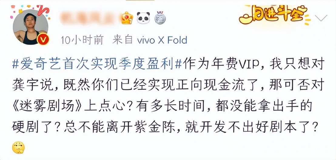 龔宇説愛奇藝減少了綜藝節目的推出,成本是省下來了,但別忘了,原創爆款綜藝,同樣是提升會員收入的殺手鐧級武器啊。
