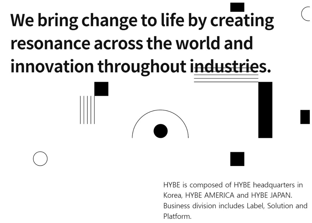 而Big Hit的野心絕不僅限於藝人經紀公司,方時赫真正想要打造的,是集合本土偶像、海外娛樂、平台供給、遊戲開發等為一體的綜合性娛樂公司。2021年3月,Big Hit Entertainment去除了“Entertainment”後綴,正式宣佈更名為Hybe。