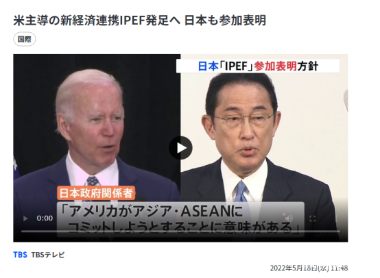 這次與東盟的特別峯會上,美國的確沒有當面提出產業鏈問題,但緊接着拜登5月20號到24號出訪日韓,就正式提出了“印太經濟框架”——IPEF倡議。日本和韓國立刻宣佈正式加入。